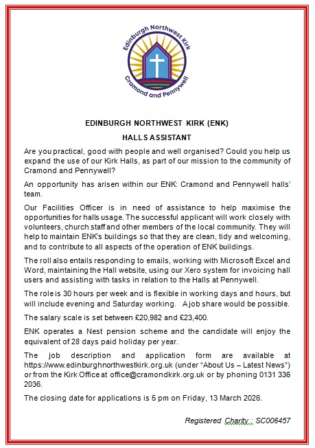 Vacancy - Edinburgh Northwest Kirk Hall Assistant